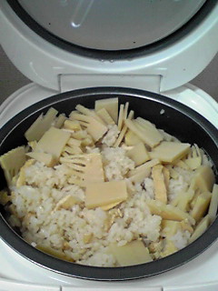 昨日、一昨日に煮た竹の子を使って、竹の子ご飯を作りました。炊き込みご飯だから、いいや、四合炊いちゃえ!って、釜一杯に竹の子ご飯を作ったはずが、今夜まで持ちませんでした。新たに白いご飯を炊いてます。ウチ、確か、二人暮しだよね…?ハハハ!
